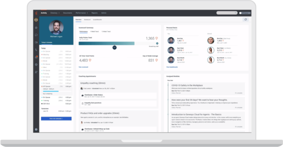 Performance metrics are consolidated from across the platform and gamified into user-friendly scorecards and leaderboards to engage and motivate employees to achieve their objectives. The screenshot below shows the personalized employee view with native gamification. And you can learn more about the complete set of performance management capabilities in Genesys Cloud.
