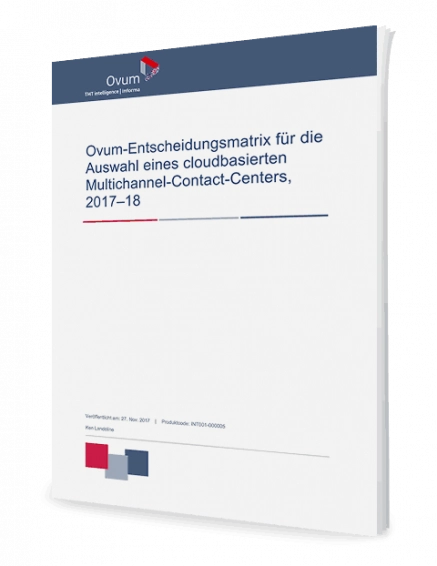 Vergleichen Sie mithilfe der „Ovum-Entscheidungsmatrix für die Auswahl eines cloudbasierten Multichannel-Contact-Centers, 2017–18“ ganz einfach die führenden Anbieter von Contact-Center-Lösungen anhand ihrer Fähigkeit, umfassende Funktionen für das Routing von Anrufen und kanalübergreifenden Kundenservice in der Cloud bereitzustellen.