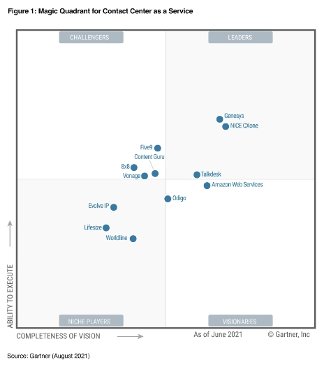 Genesys è stata nominata Leader nel Gartner 2021 Magic Quadrant for Contact Centre as a Service di agosto, posizionandosi nel punto più alto per capacità di esecuzione. In quanto nostro partner hai accesso alla tecnologia per la Customer Experience più all’avanguardia del settore, progettata per soddisfare e superare le richieste dei tuoi clienti, e per consentirti di creare direttamente soluzioni in grado di fare la differenza.