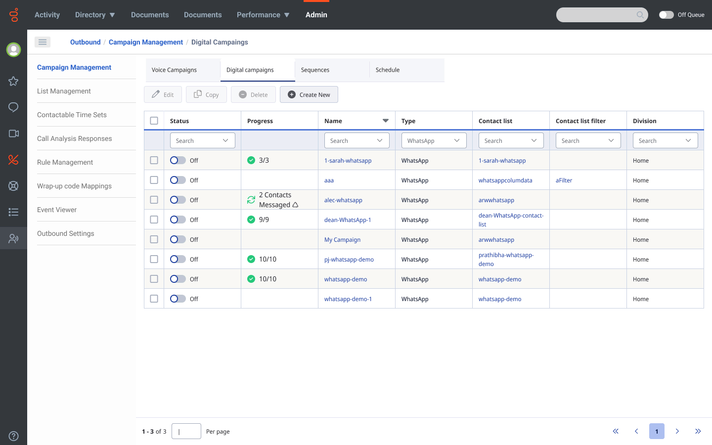 O Genesys Cloud agora oferece suporte a campanhas digitais outbound no WhatsApp, permitindo que as empresas automatizem e personalizem mensagens em grande escala, semelhantes às campanhas por SMS e e-mail existentes, usando mensagens direcionadas e pré-aprovadas para promoções, atualizações e engagement com o cliente, diretamente por meio do WhatsApp. Os administradores podem gerenciar campanhas do início ao fim, acompanhar o desempenho e analisar resultados diretamente na plataforma de análise.